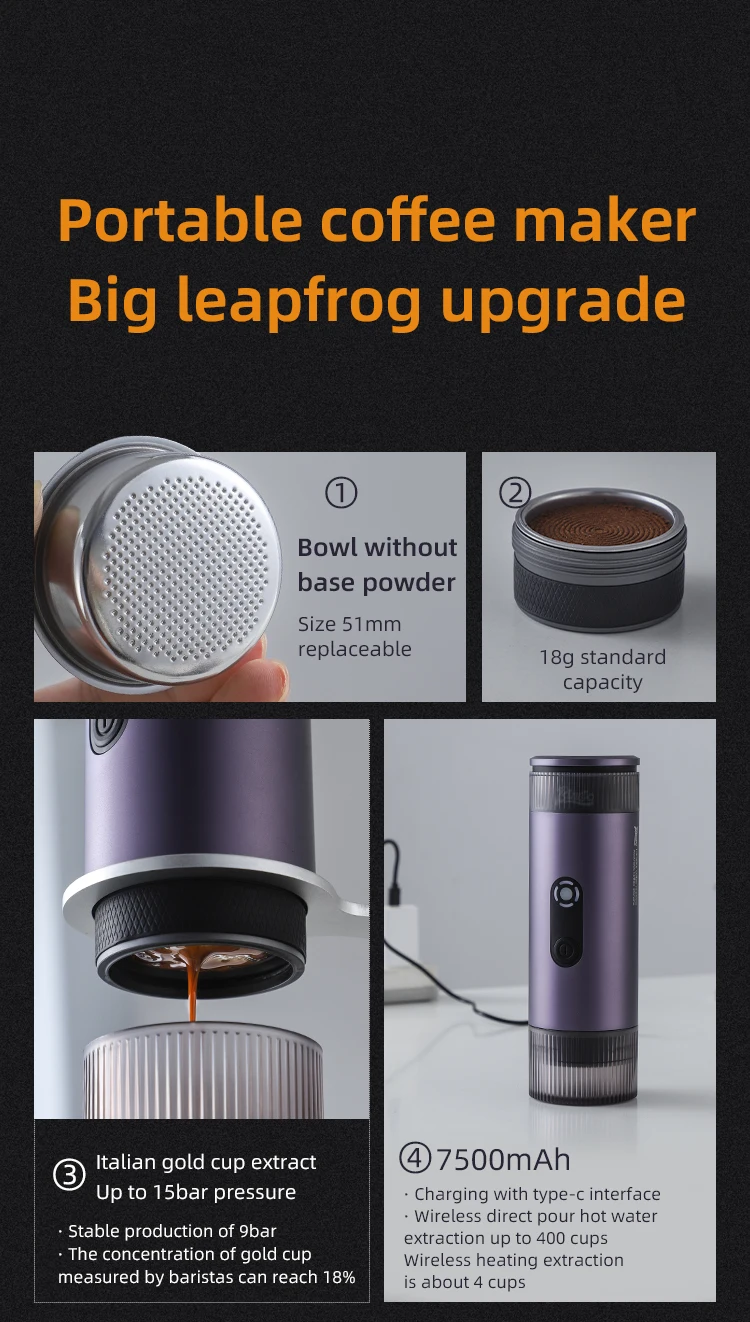 Bincoo Upgraded Portable Coffee Machine,H1 Pro Electric Wireless Heating and Cold Extraction Espresso Maker,Home Camping Outdoor