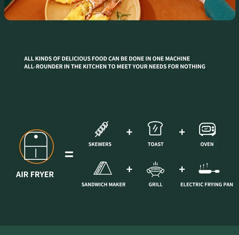 New Air Fryer. 6L Large Capacity. Home Kitchen. Multi-Function Intelligent. Oil-Free, Smoke-Free. for French Fries.