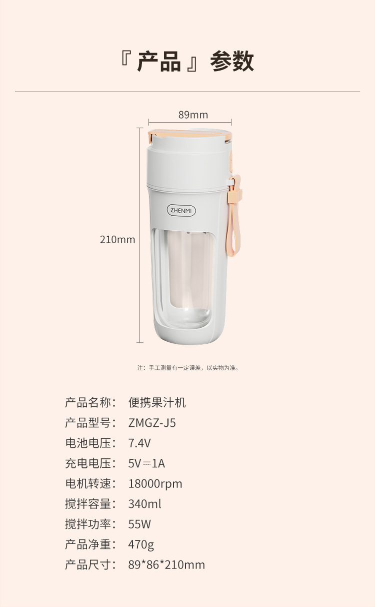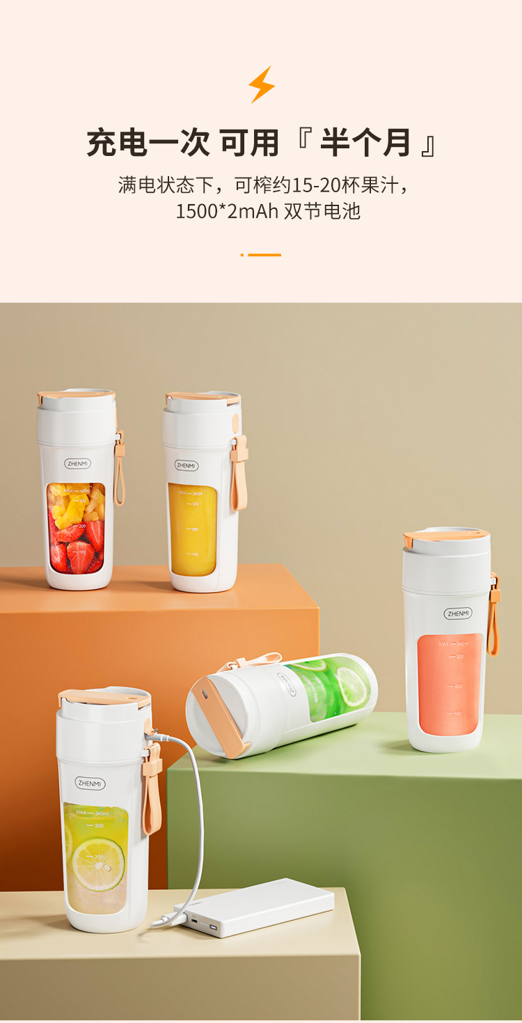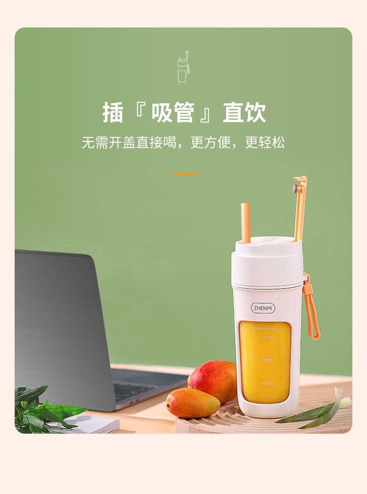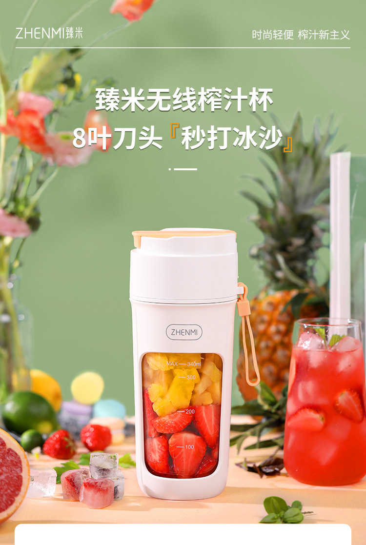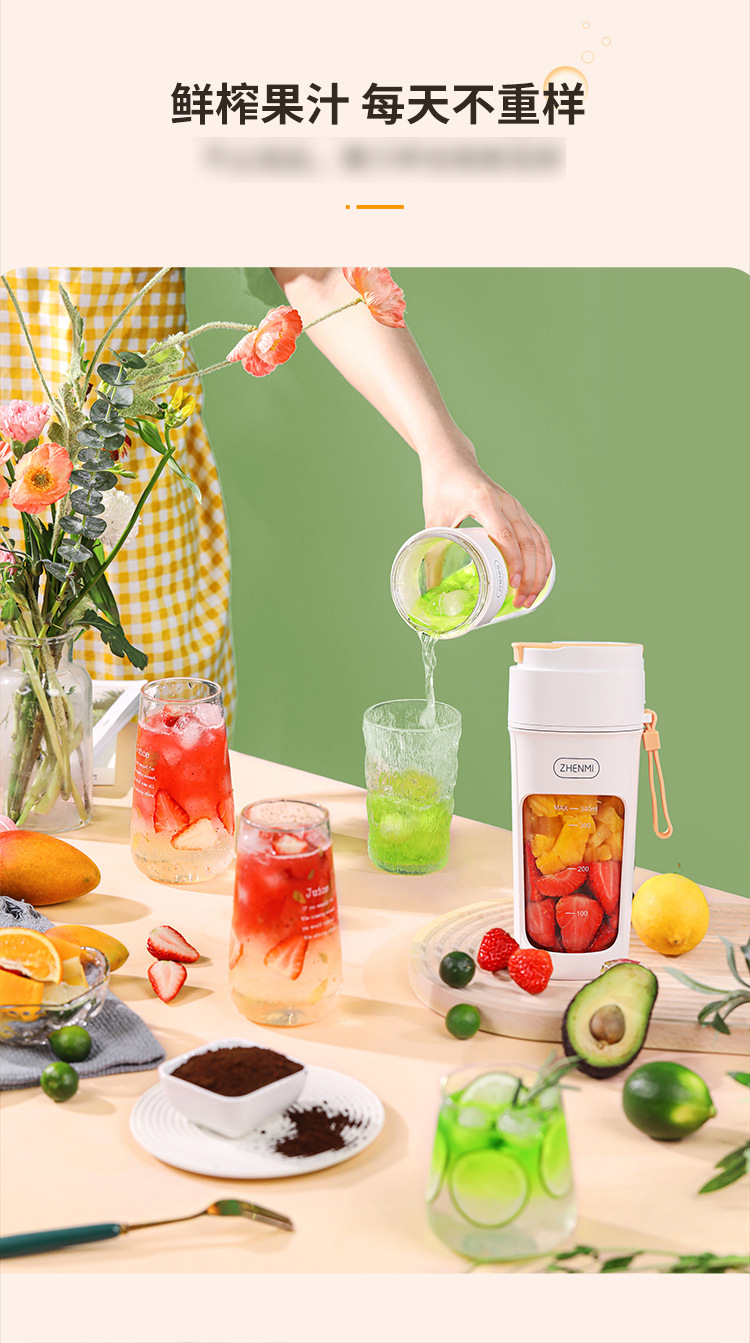 Zhenmi Portable Wireless Electric Juice Squeezer - Mini Mixer for Fresh Fruit and Sugarcane
